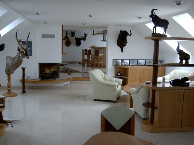 Prodejna zbraní – České Budějovice Realizace luxusního interiéru v prodejně zbraní v Českých Budějovicích v leštěné dlažbě.